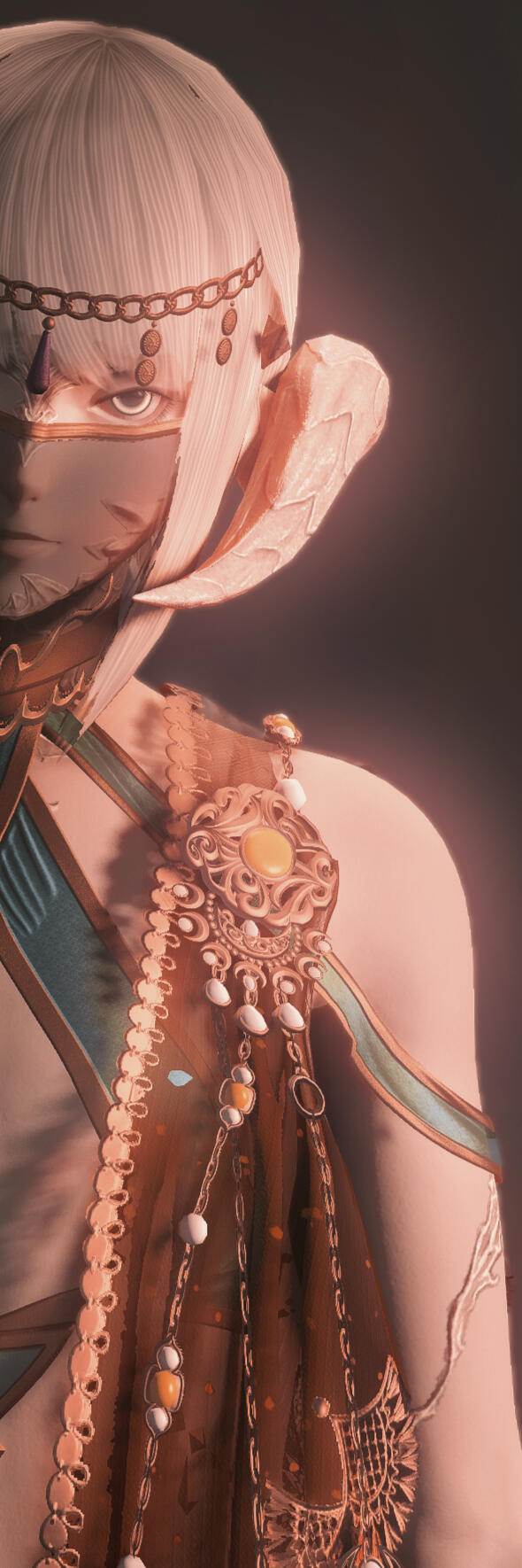 Crafted in the likeness of Amdapori statues, specifically from a tradition of sculptures depicting young, Amdapori males in a beautiful, idealised fashion. Any likeness towards raen is purely coincidental and upon closer inspection the pearlescent scales, horns, and barbed tail seem to be from a distinct (and decidedly unusual) style altogether.